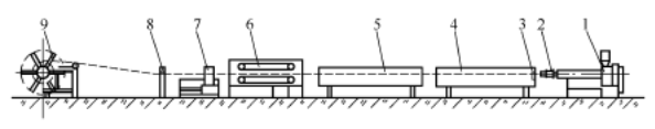 Seperti dapat dilihat dari Gambar 1, peralatan hilir ekstrusi pipa terutama terdiri dari tangki air pendingin,unit pengangkutan, pemotong, kumparan, atau tabel pembuangan.