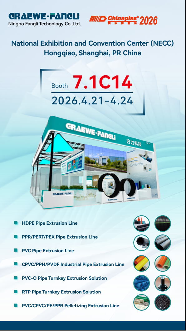 मराठी Selamat datang di stan kami 7.1C14 di ChinaPlas 2026,Ningbo Fangli Technology Co, Ltd.(selanjutnya disebut sebagai "Fangli") mengkhususkan diri dalam R&D, produksi dan penjualanperalatan ekstrusi plastik, jalur produksi perlindungan lingkungan baru, mesin las pipa plastik dan mesin bantu plastik.